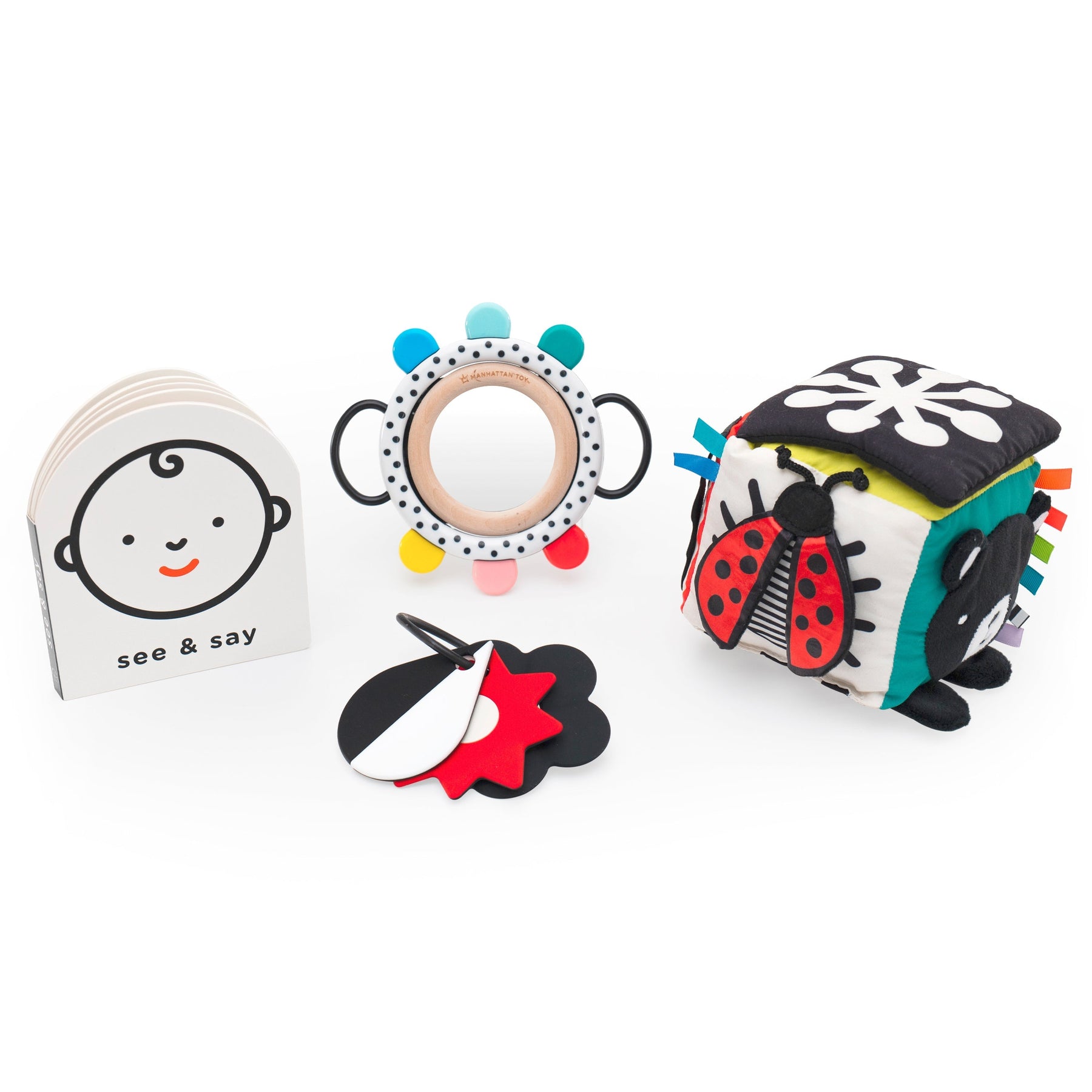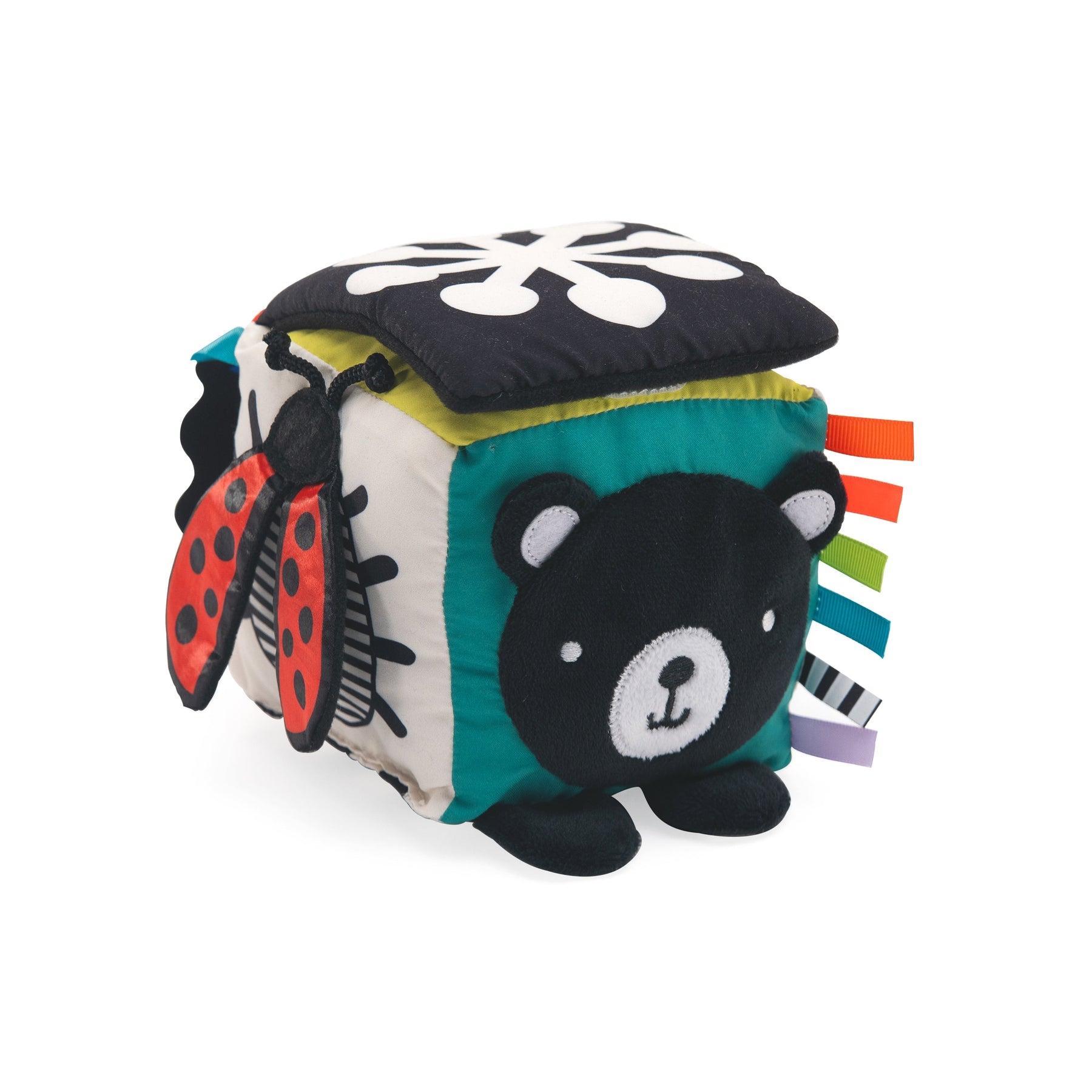 - soft 6-sided cube with crinkle flap and peek-a-boo mirror